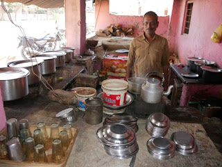 Today the maharaja, when he is in Gwalior, lives in a new palace in the city. Part of it is now the Jai Vilas museum, where all the maharaja stuff is shown: fully furnished banquet halls with ten-ton chandeliers (they put eight elephants on the roof before hanging them, to test the roof), a glass model railway running down the dining room table to serve drinks, coaches, dresses, the works. I was late, and behind me they were shutting off the lights and locking every room after I left it, spooky. Outside, I met a traveler from Jaipur, check out his blog: myworldinmybagpack.blogspot.in.